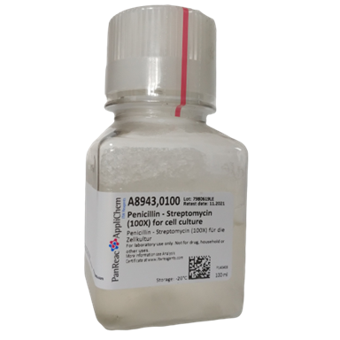 Penicillin-Streptomycin(100X)forcellculture,俗稱青鏈霉素雙抗,常用于預(yù)防細(xì)胞培養(yǎng)的細(xì)菌污染,特別是革蘭氏陽性和陰性菌的污染,可以直接添加到細(xì)胞培養(yǎng)液內(nèi)。青霉素抑制肽聚糖合成,鏈霉素抑制蛋白質(zhì)的合成,有效防止細(xì)菌細(xì)胞壁形成。
