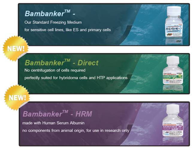 ?收集對數(shù)生長期的細胞(5 x 105?~ 1 x 107)?用1ml?BambankerTM重懸細胞,置于凍存管中,無需預(yù)冷,直接-80℃或液氮冷凍保存細胞恒溫箱或水浴快速復(fù)蘇細胞